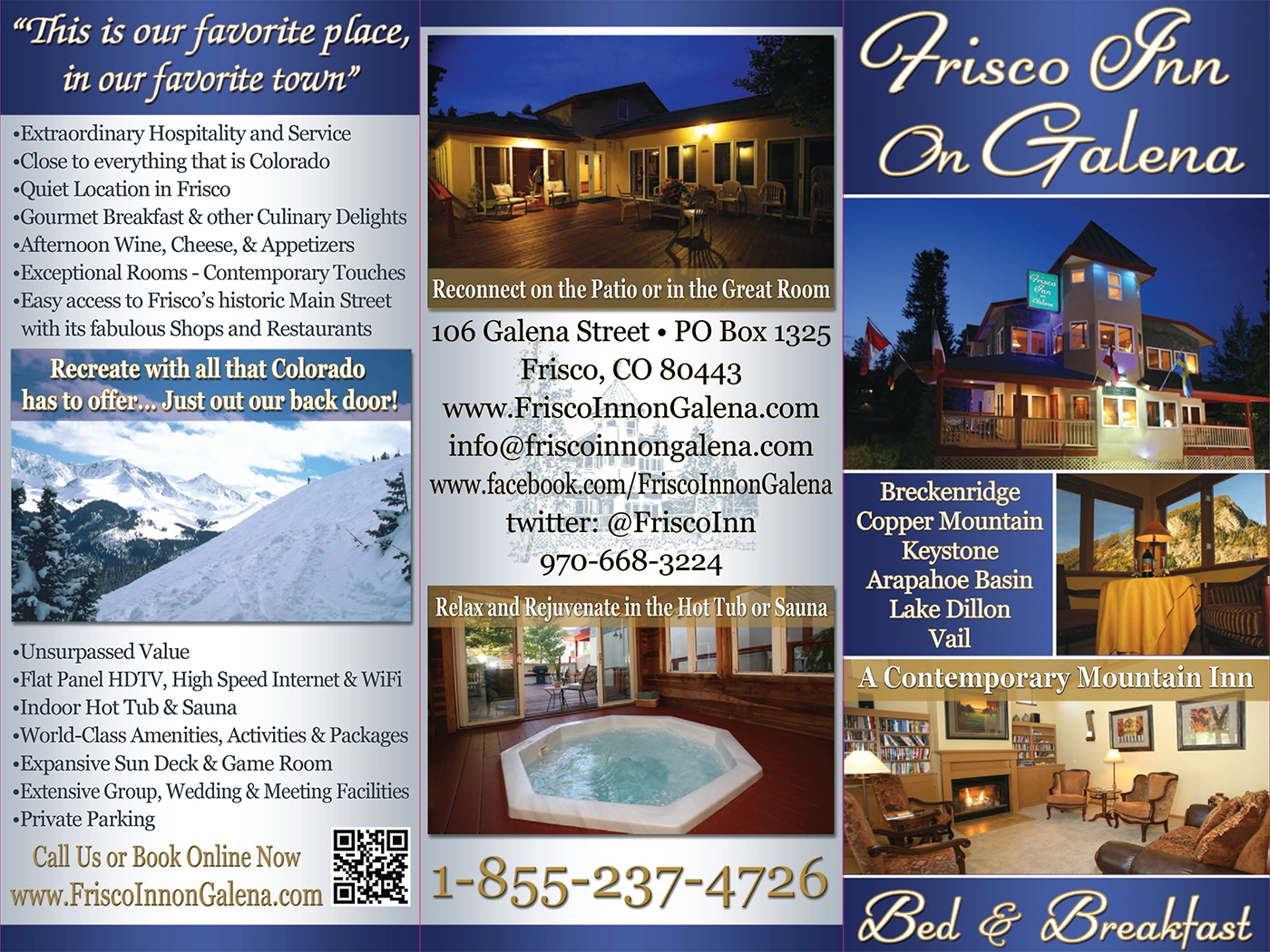 Whether you are planning a romantic getaway, a sport-focused retreat, a small group gathering, or simply exploring lodging options in Summit County, our brochure offers a concise look at what sets us apart.