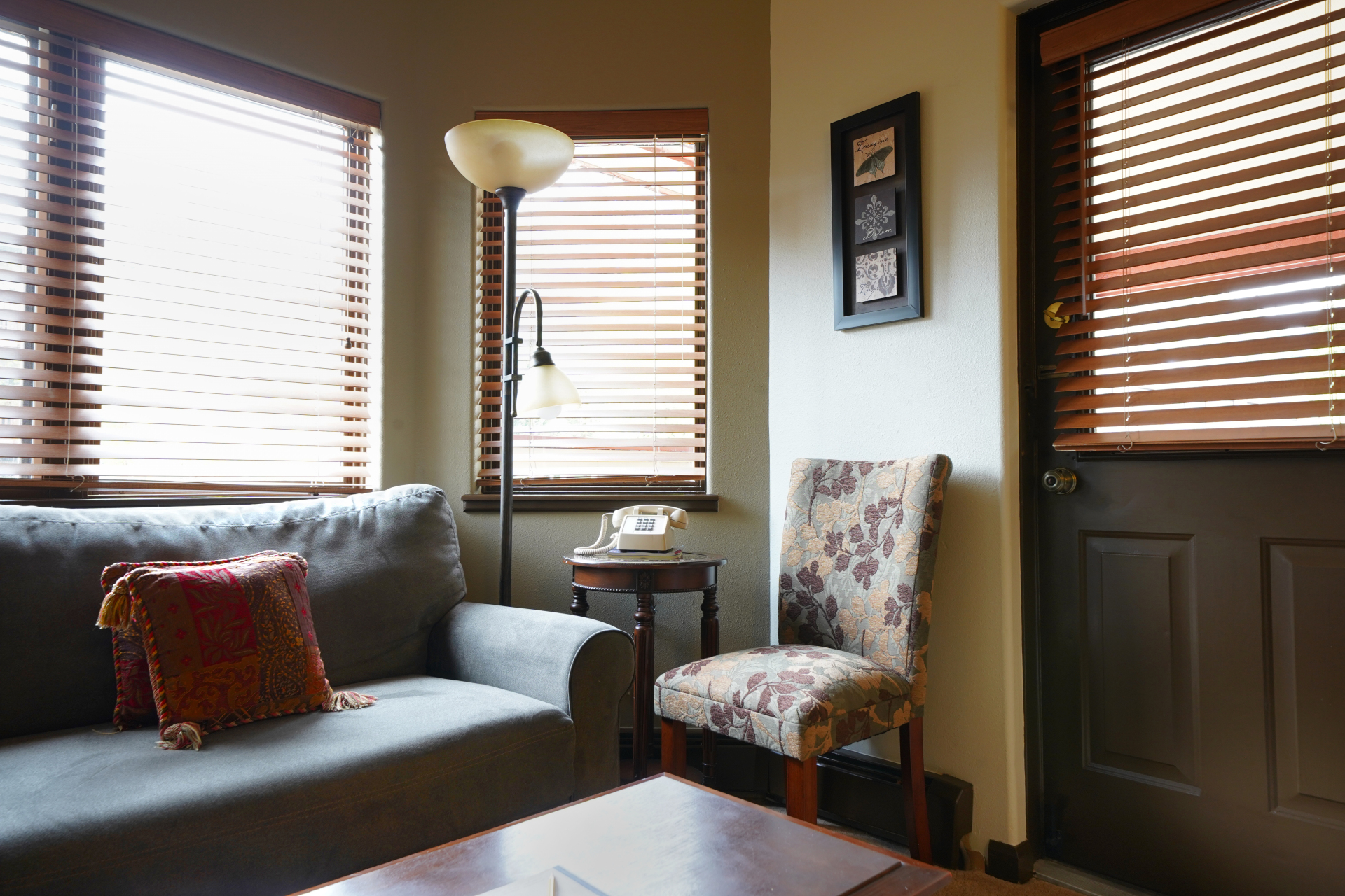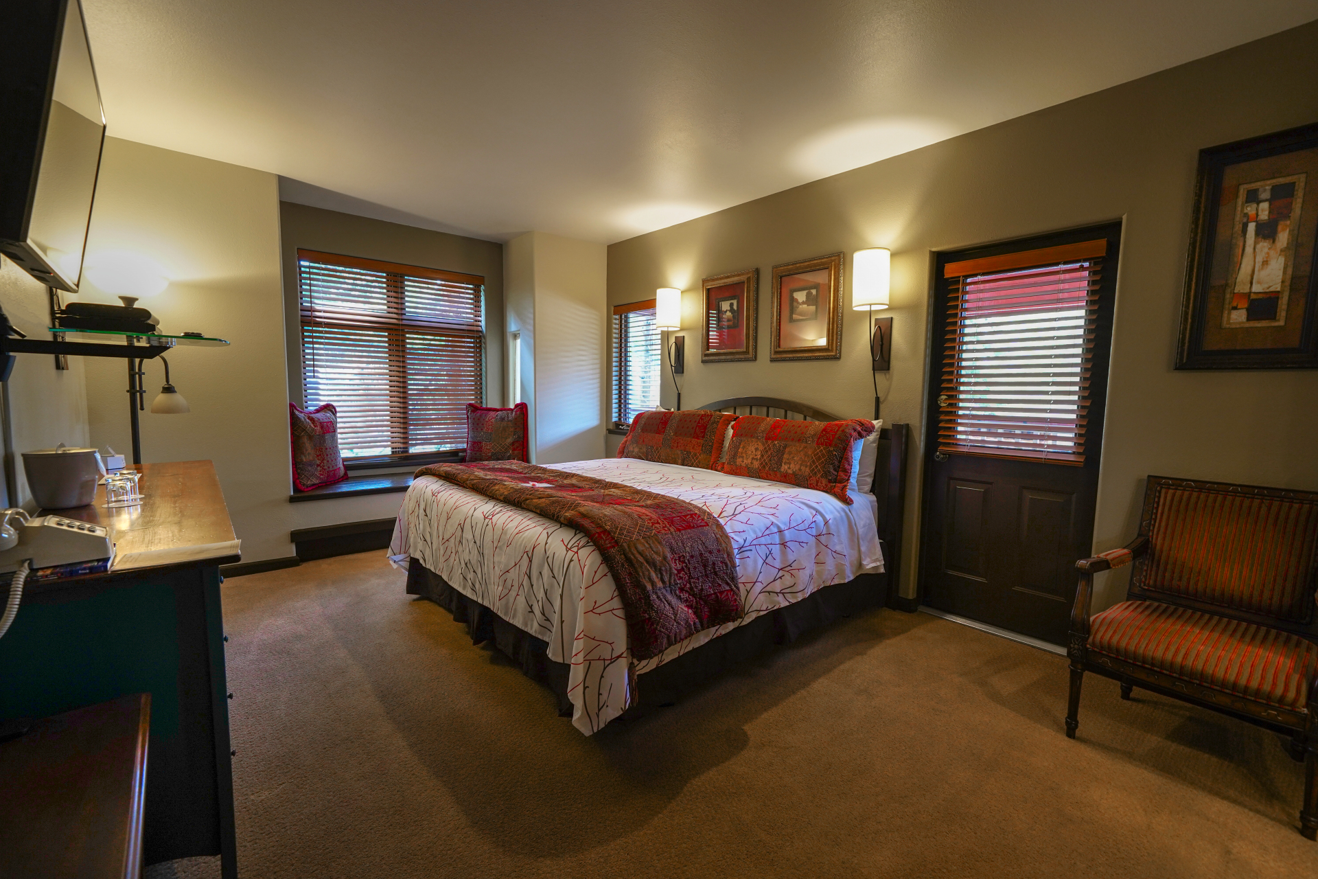 Three deluxe guest rooms with a patio, one Queen, and two King are available at the Frisco Inn. These accommodations are bigger than our standard rooms and include lovely private patios with seating areas and outdoor artwork.