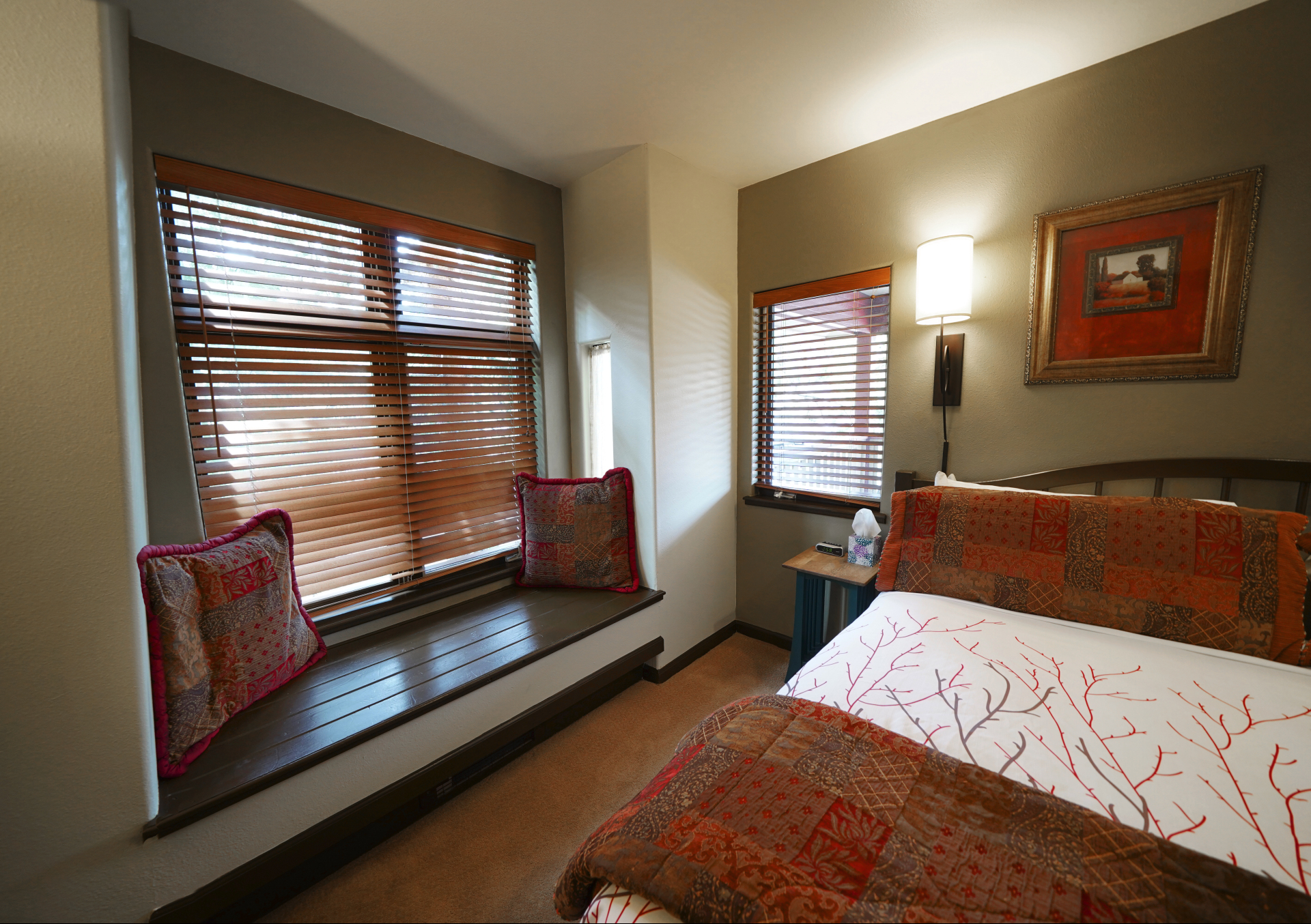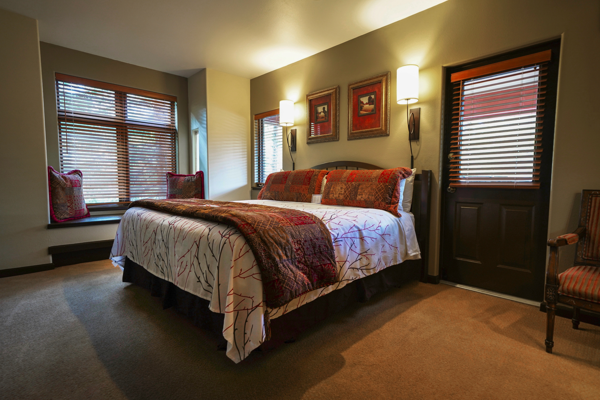 Unwind on Colorado's refreshing, pine-scented nights while taking in the stunning views of the mountains nearby with deluxe patio bedrooms. The King Patio Room 101 and 106 features a king bed and Room 106 also has a luxury loveseat sleeper for maximum three guests, while the Queen Patio Room 107 has a queen bed and two quality loveseat sleepers.