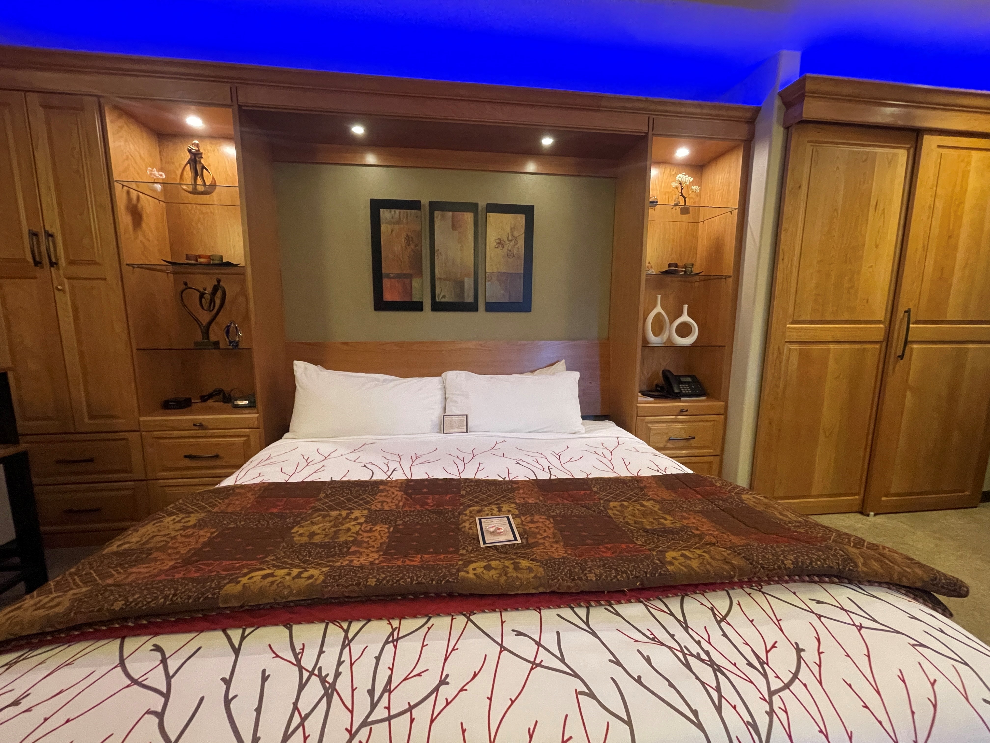 As you step inside, the first thing that captures your attention is the exquisite use of natural cherry wood. Its rich tones and unique grain patterns accent the signature room, creating a warm and inviting atmosphere that makes you feel at home. The natural elegance of cherry wood is seamlessly integrated into the furniture and accents, enhancing the signature room's overall aesthetic appeal.
