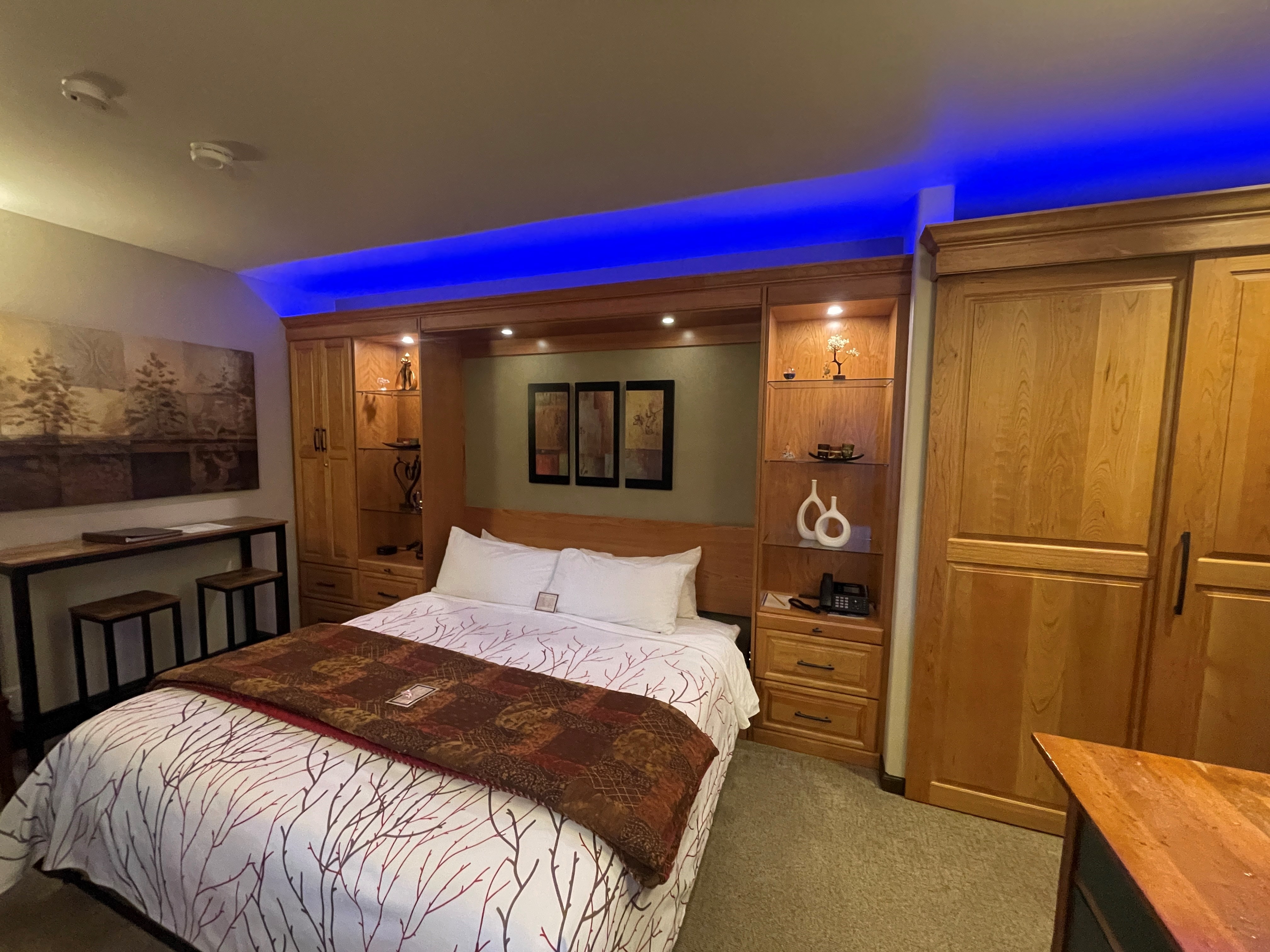 Welcome to our newest addition, the King Room, a natural elegance and serene luxury masterpiece. Meticulously designed to harmonize with the Inn’s distinctive architectural style, this signature room in the inn is a tribute to the beauty of natural wood, incorporating it into every facet of its decor.