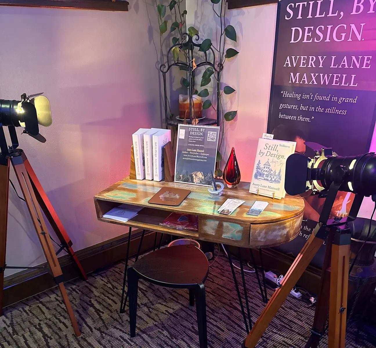 Anchored by Still: By Design, penned by our resident Innkeeper Avery Lane Maxwell, this space celebrates quiet reflection, intention, and thoughtful craft. The book is placed not as decoration, but with purpose. Where Plato invites us to question through dialogue, Avery’s work expresses those same principles through form, proportion, and clarity.