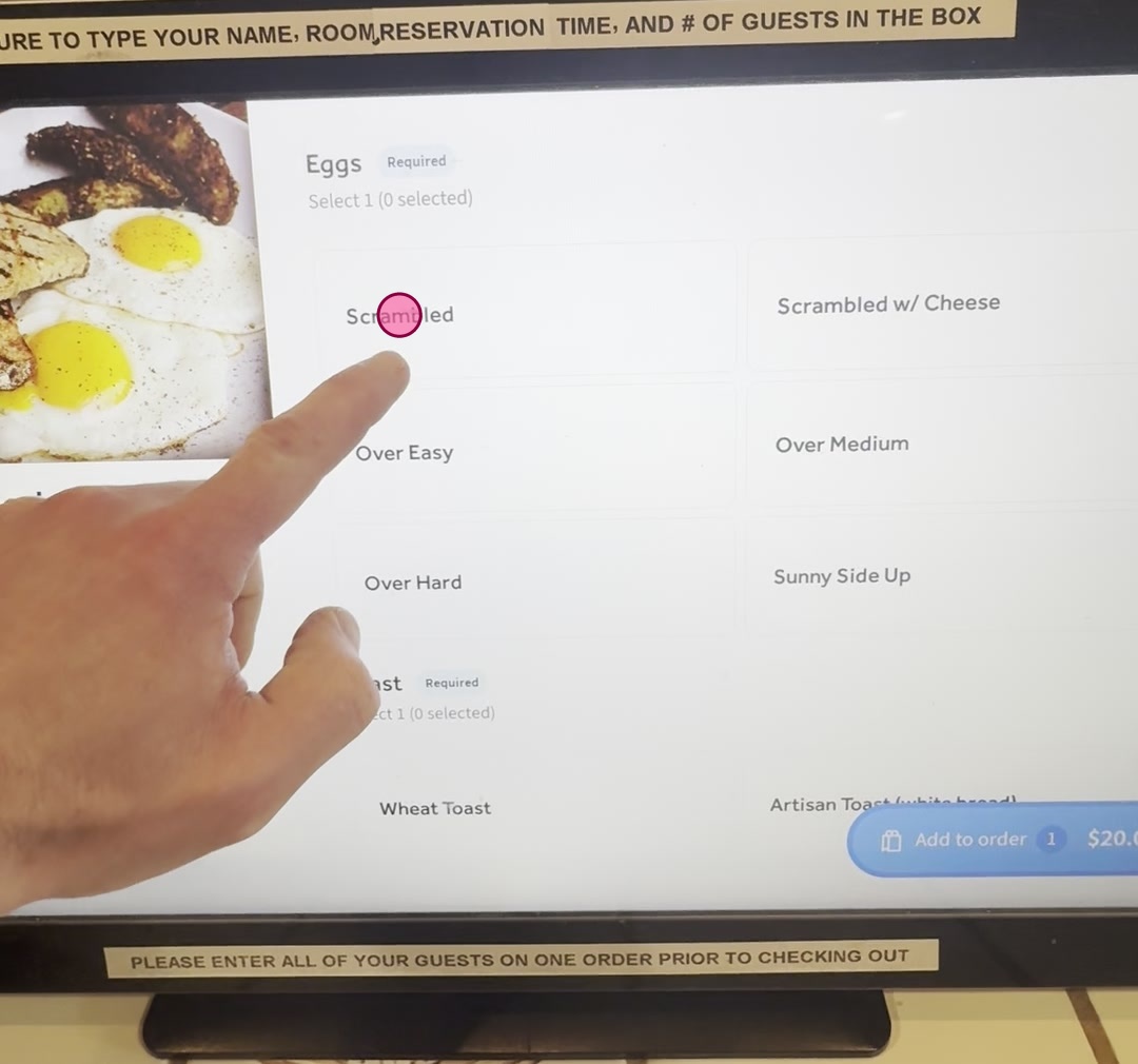 Tap 'Scrambled' under the 'Eggs' customization options.
