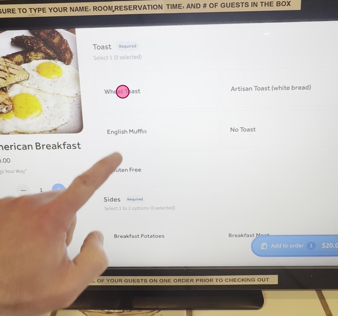 Choose Breakfast Selection (example is for our American Breakfast)