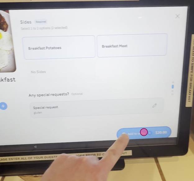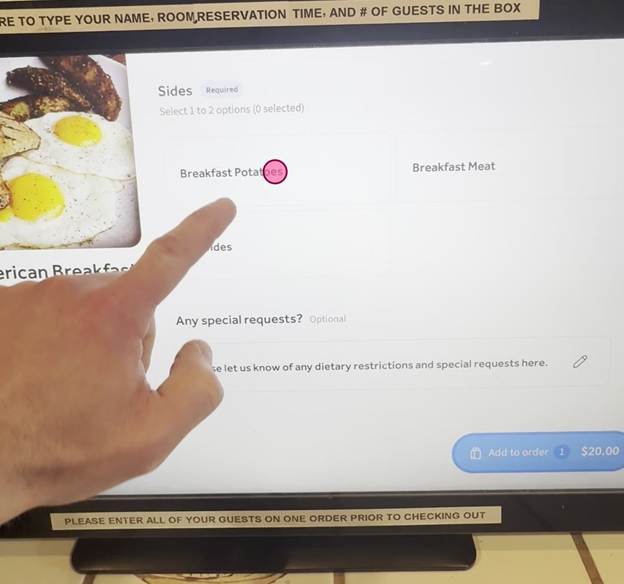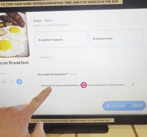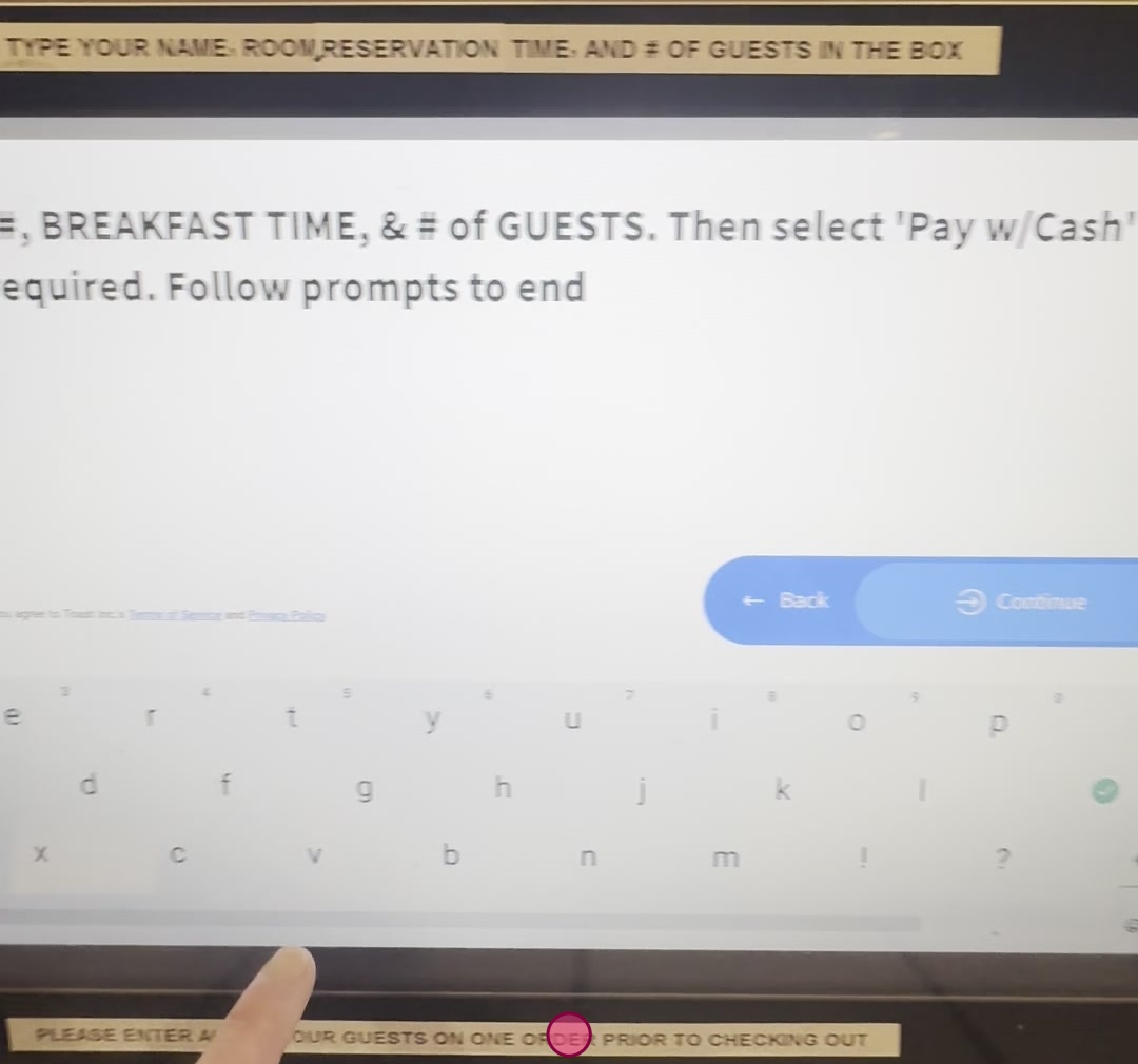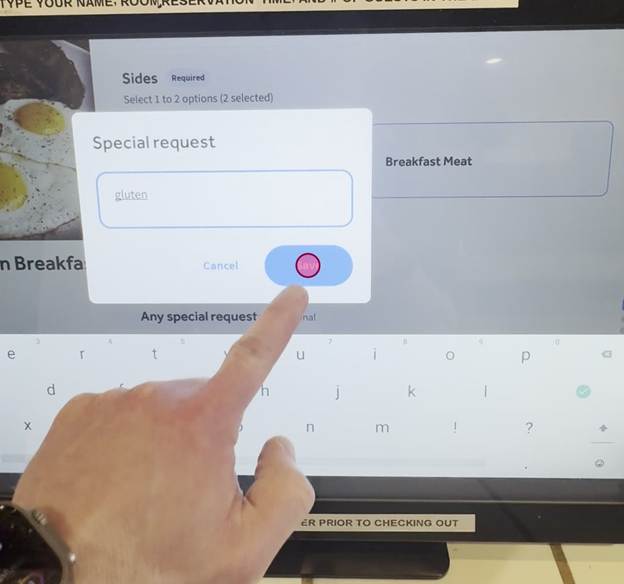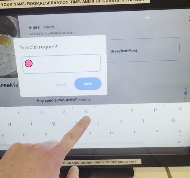 Tap the text field and your name, room number, number of guests, and selected breakfast time.